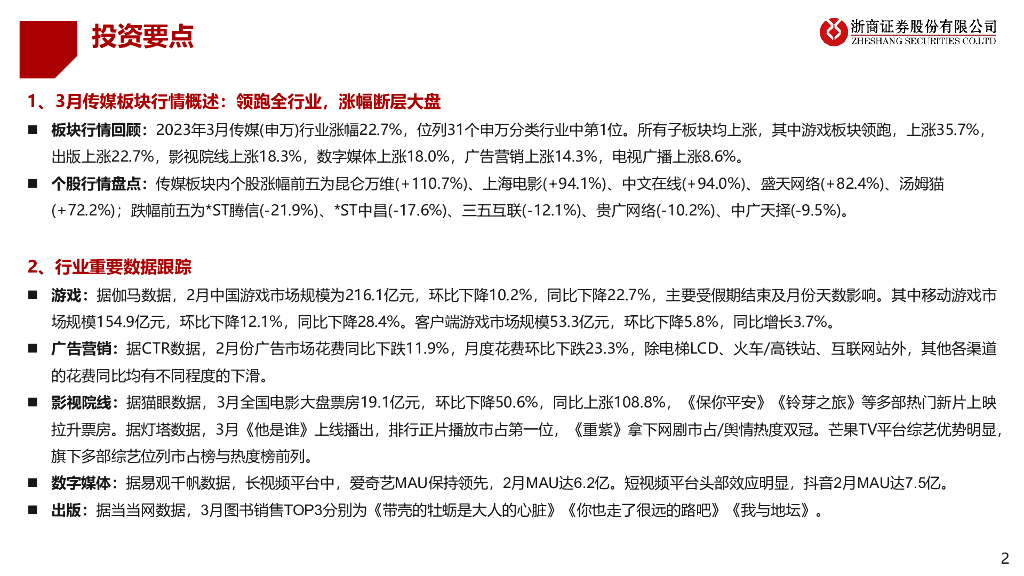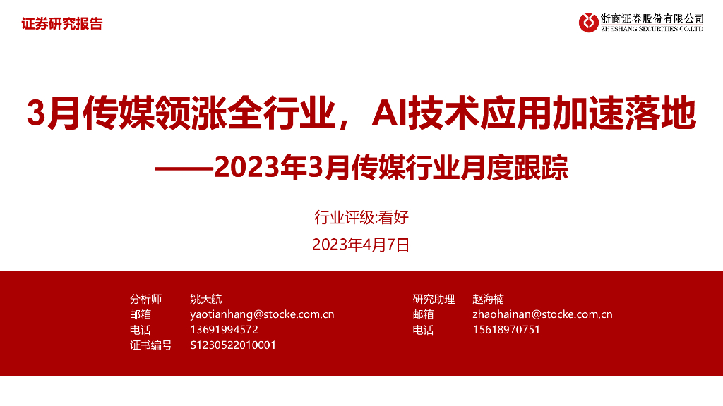 浙商证券:2023年3月传媒行业月度跟踪:3月传媒领涨全行业,AI技术应用加速落地.pdf