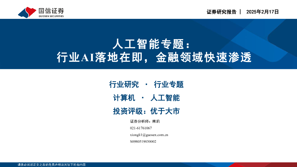 国信证券:人工智能专题:行业AI落地在即,金融领域快速渗透.pdf