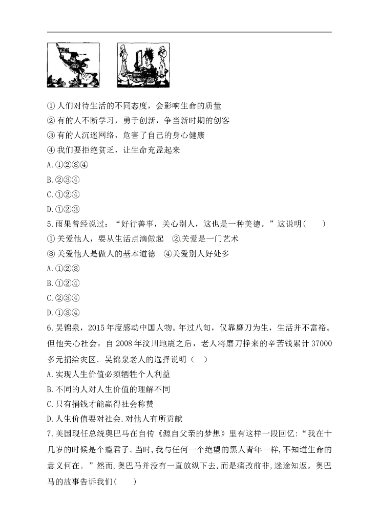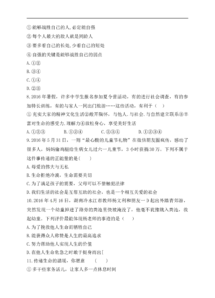 七年级上册 初中道德与法治4.10.2《活出生命的精彩》提升训练.doc