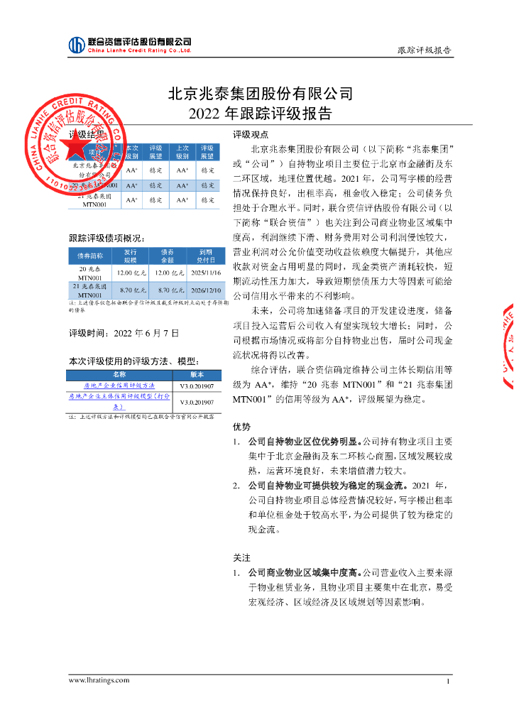 联合资信:北京兆泰集团股份有限公司2022年跟踪评级报告.pdf