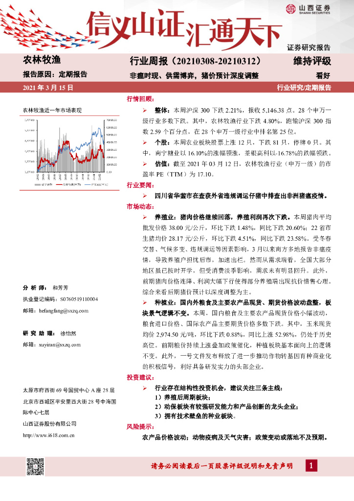 山西证券:农林牧渔行业周报:非瘟时现、供需博弈,猪价预计深度调整.pdf
