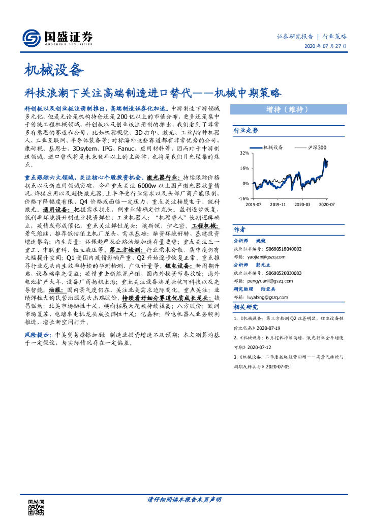 国盛证券:机械中期策略:科技浪潮下关注高端制造进口替代.pdf