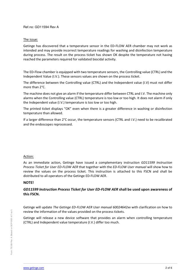 Getinge ED-FLOW, Automated Endoscope Reprocessor (AER) 温度传感器不正常工作.pdf