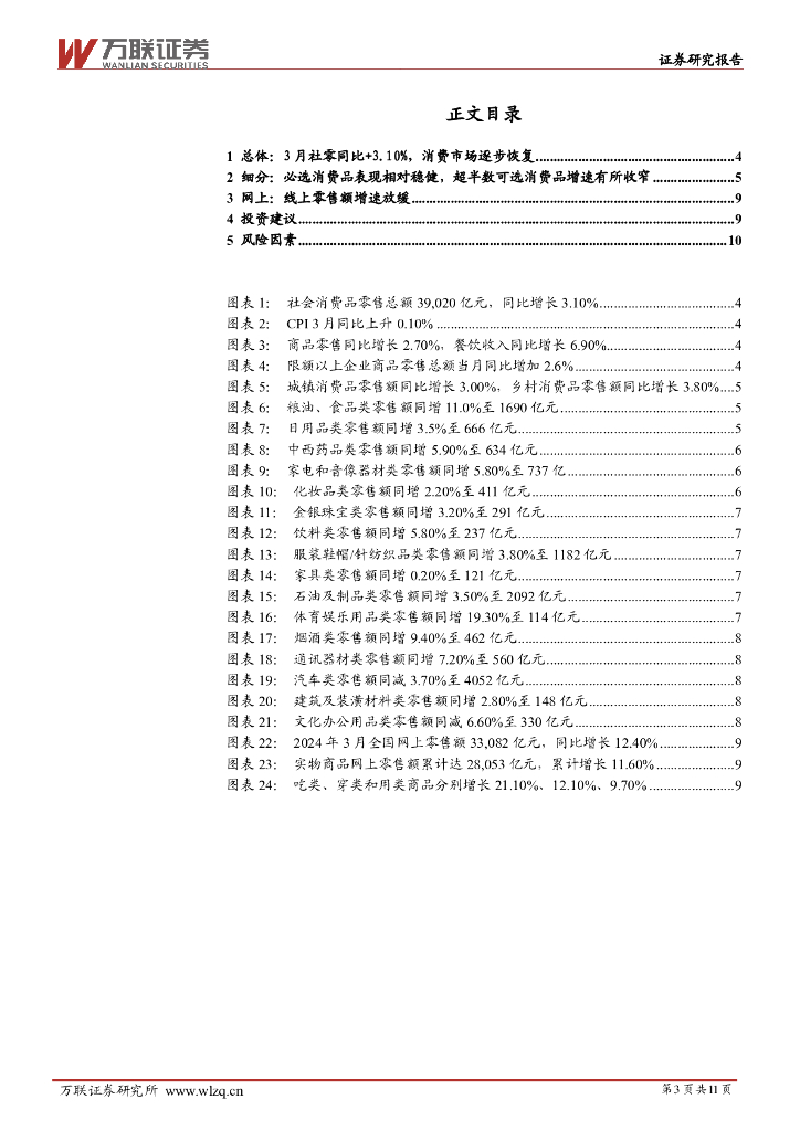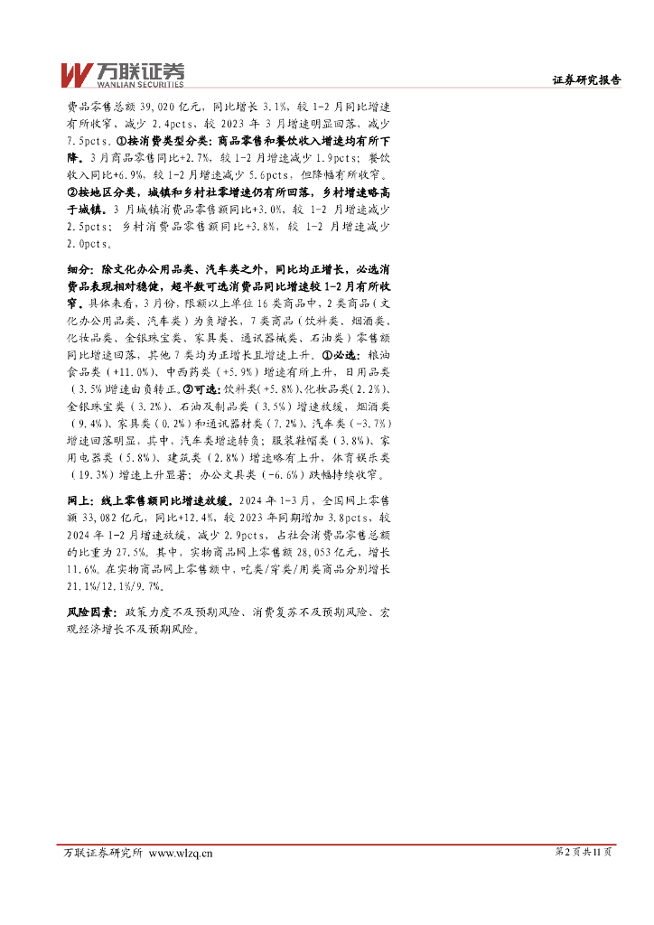 万联证券:商贸零售行业2024年3月社零数据跟踪报告:3月社零同比+3.1%,必选品更具韧性.pdf