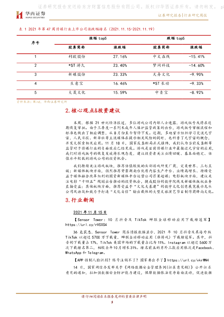 华西证券:传媒行业周报系列2021年第47周:游戏版号将恢复发放,国家反垄断局挂牌.pdf