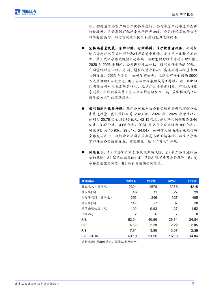 国海证券:江丰电子(300666)-点评报告:靶材业务边际改善,零部件快速放量,分红、回购助力投资者信心.pdf