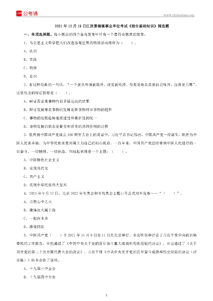 2021年12月19日江西景德镇事业单位考试《综合基础知识》精选题.pdf