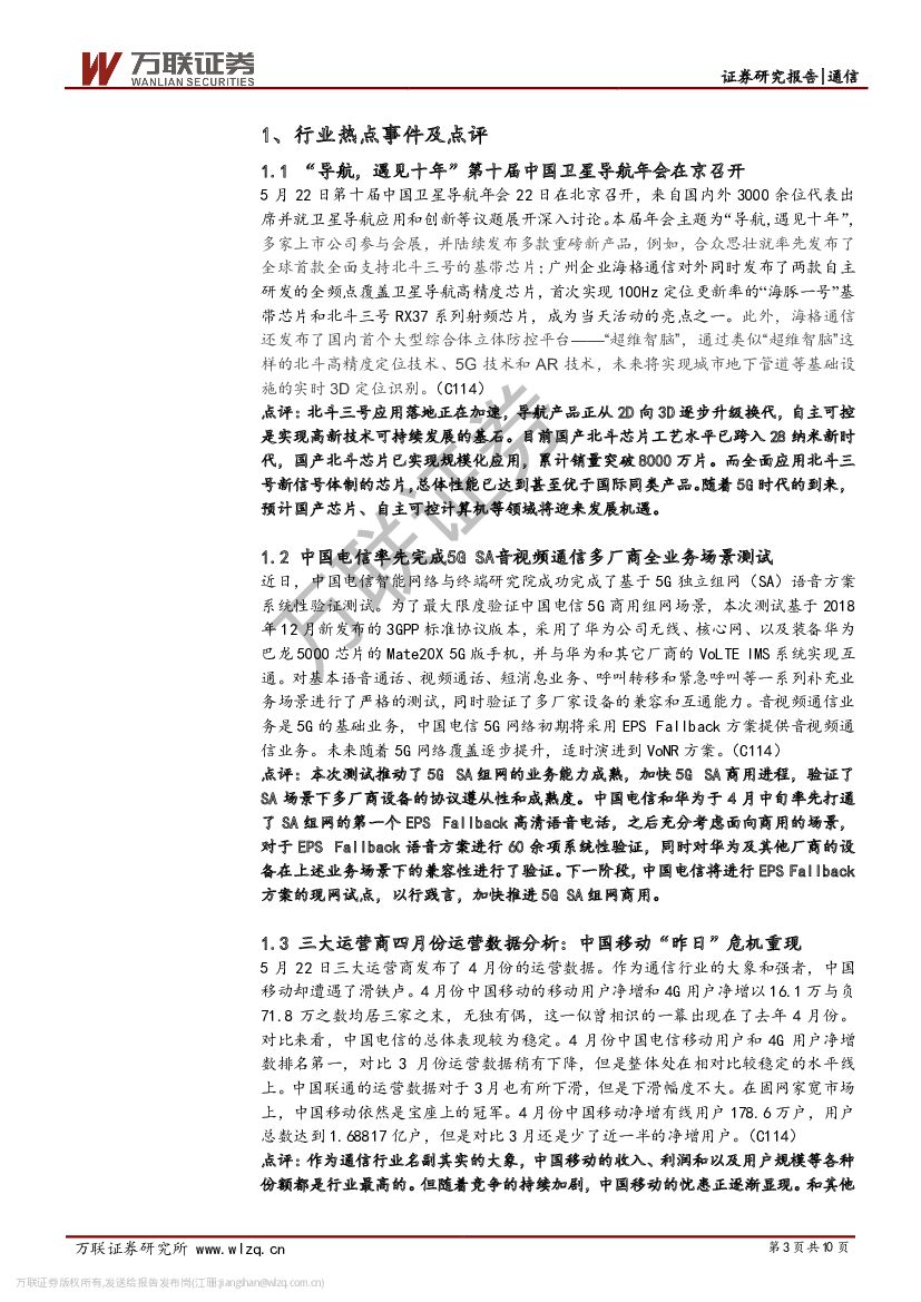 万联证券:通信行业周观点:北斗自主可控催化,中国5G商用进程提速.pdf