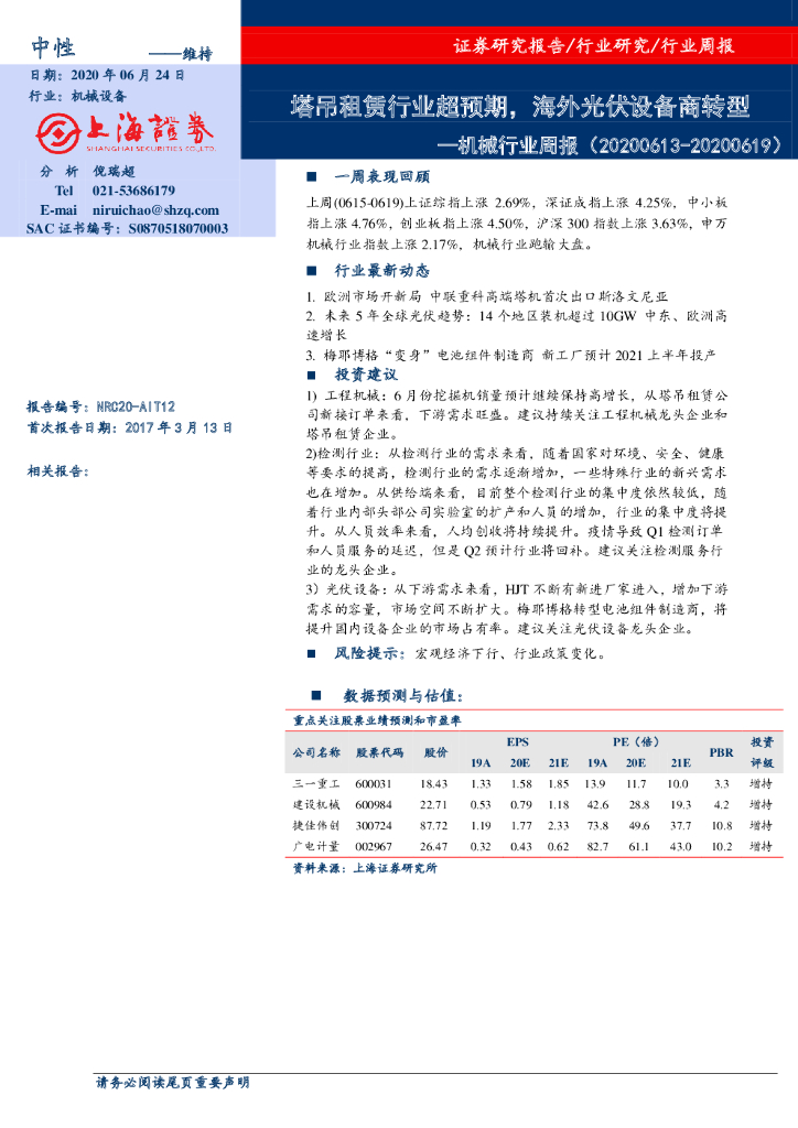 上海证券:机械行业周报:塔吊租赁行业超预期,海外光伏设备商转型.pdf