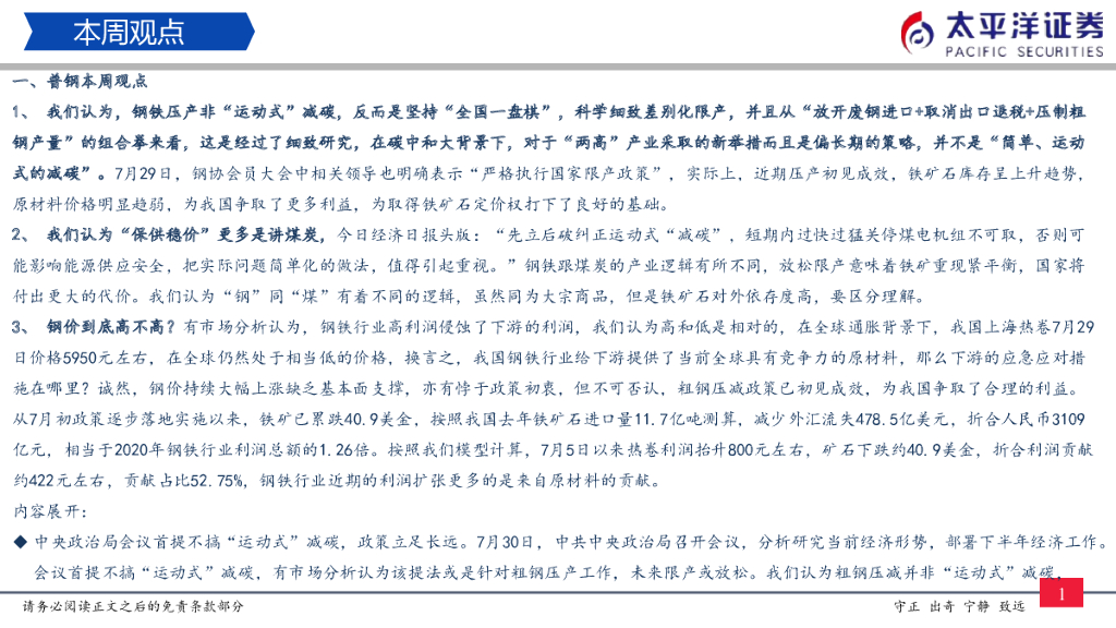太平洋证券:钢铁周报:钢铁压产并非“运动式”减碳,且压产初见成效将持续.pdf