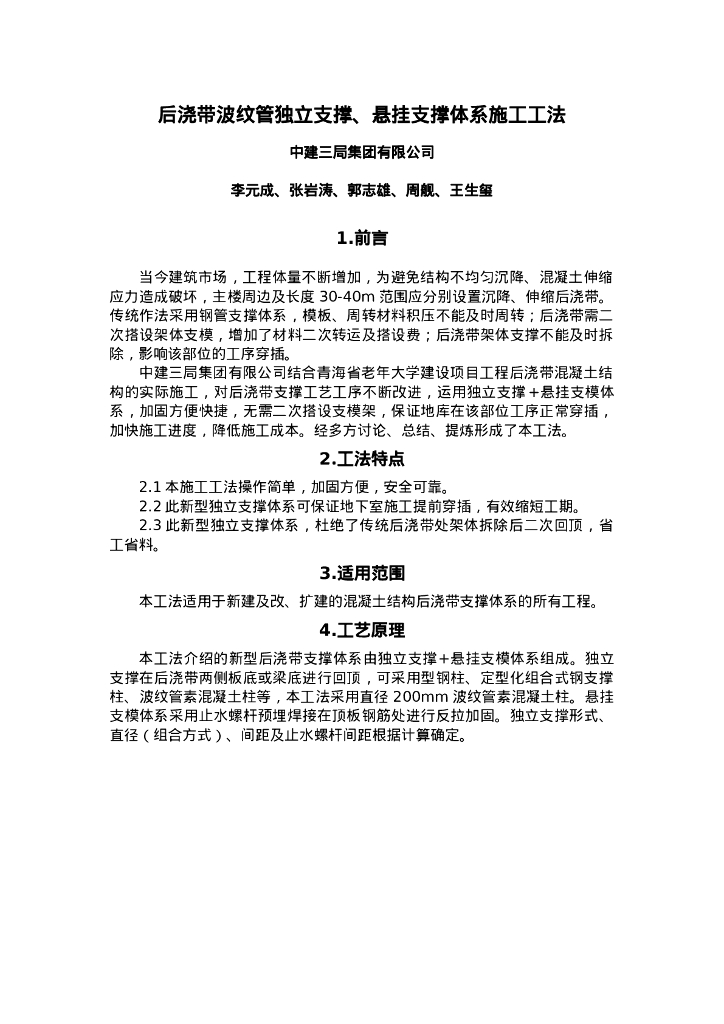 QHGF-2022075 后浇带波纹管独立支撑、悬挂支撑体系施工工法.doc