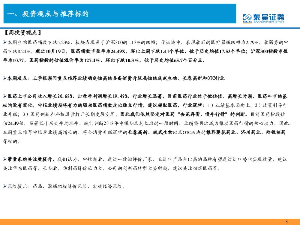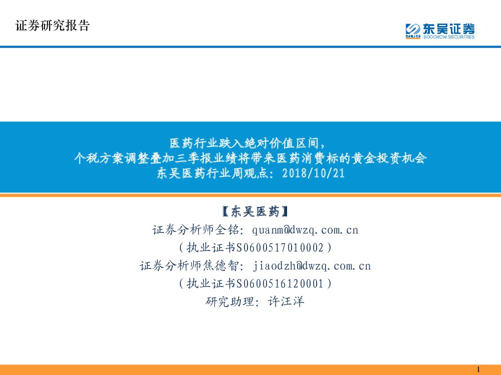 东吴证券:东吴医药行业周观点:医药行业跌入绝对价值区间,个税方案调整叠加三季报业绩将带来医药消费标的黄金投资机会.pdf
