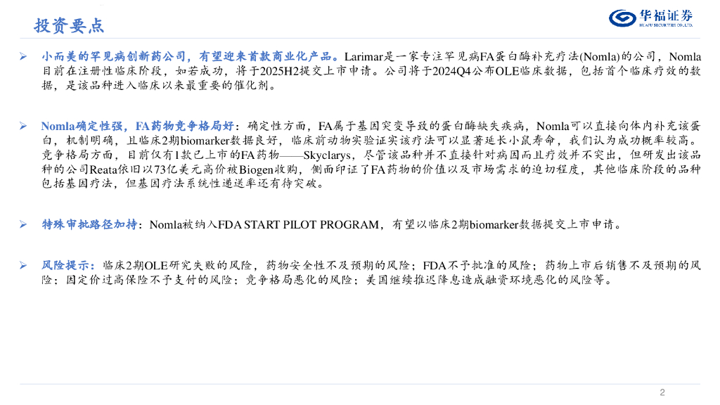 华福证券:医药生物行业专题报告:Larimar:FA领域首个DiseaseModifyingTherapy.pdf