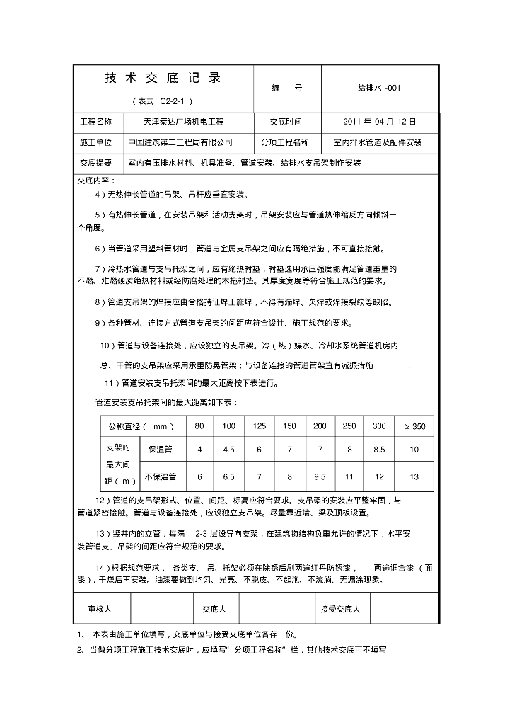 给排水支吊架压力排水技术交底.pdf