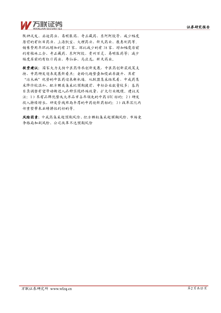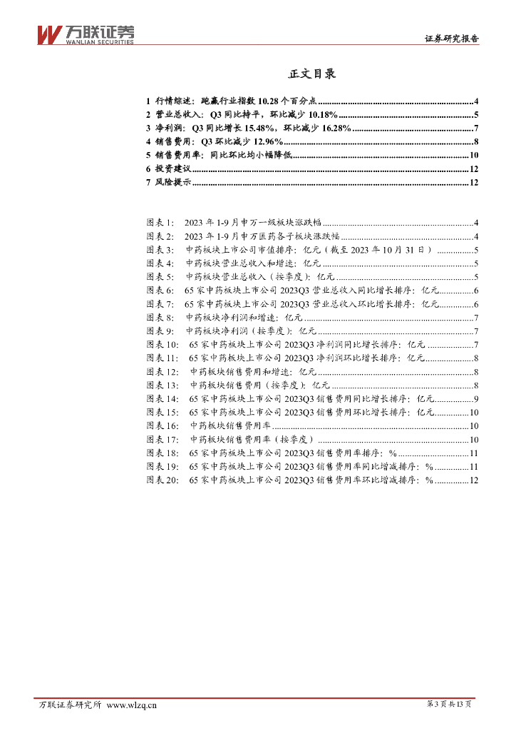 万联证券:中药Ⅱ行业跟踪报告:Q3业绩承压,销售费用同比环比均下降.pdf