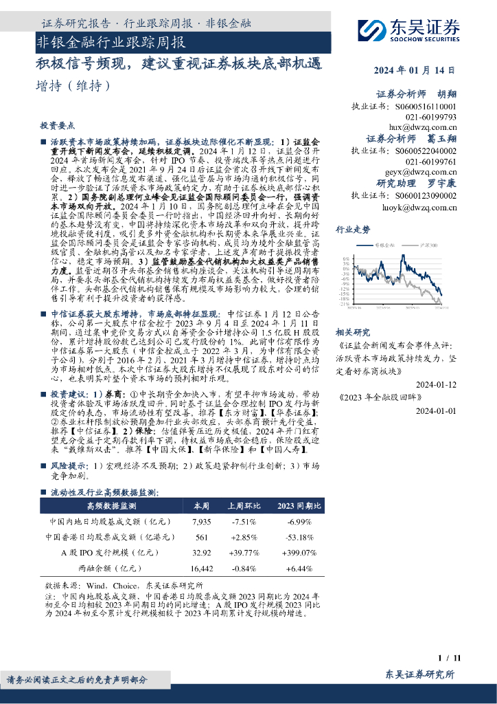 东吴证券:非银金融行业跟踪周报:积极信号频现,建议重视证券板块底部机遇.pdf