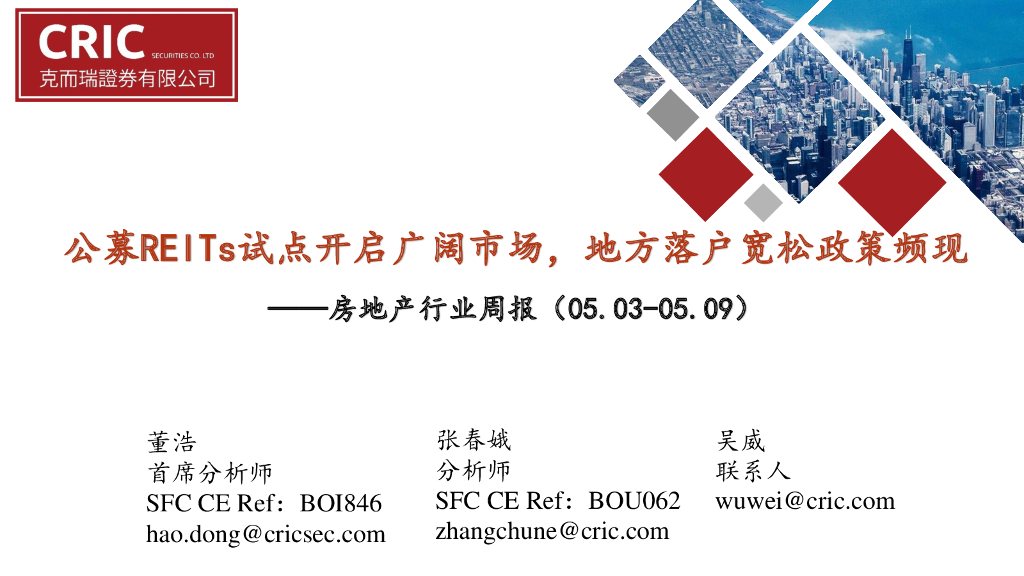 克而瑞证券:房地产行业周报:公募REITs试点开启广阔市场,地方落户宽松政策频现.pdf