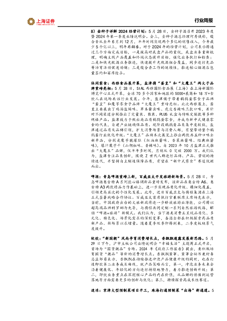 上海证券:食品饮料行业周报:白酒股东会彰显信心,大众品稳健发展.pdf