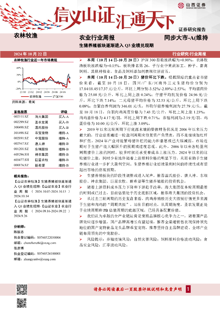 山西证券:农业行业周报:生猪养殖板块逐渐进入Q3业绩兑现期.pdf