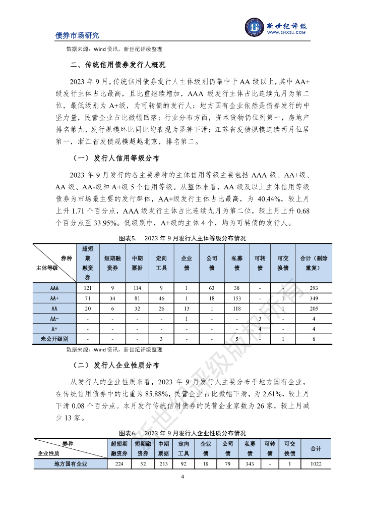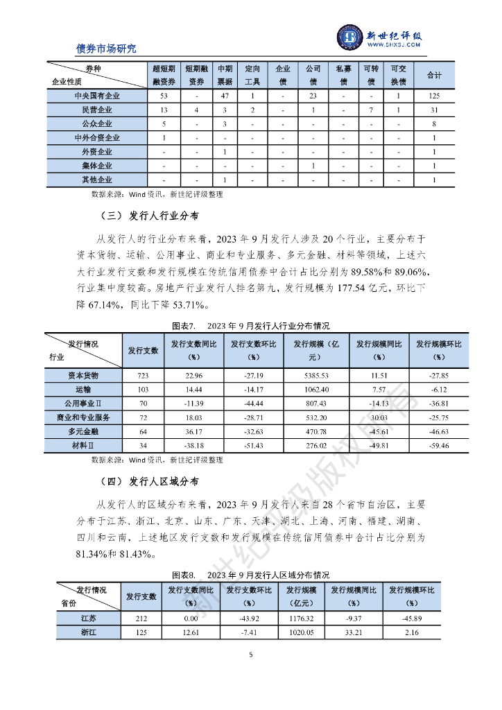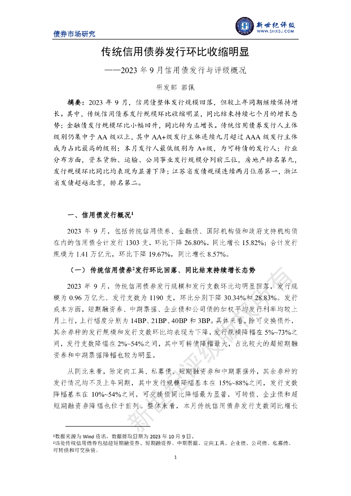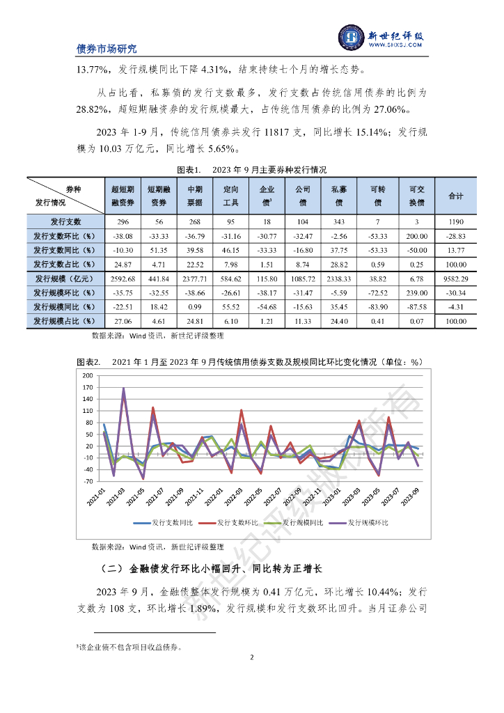 新世纪评级:传统信用债券发行环比收缩明显——2023年9月信用债发行与评级概况.pdf