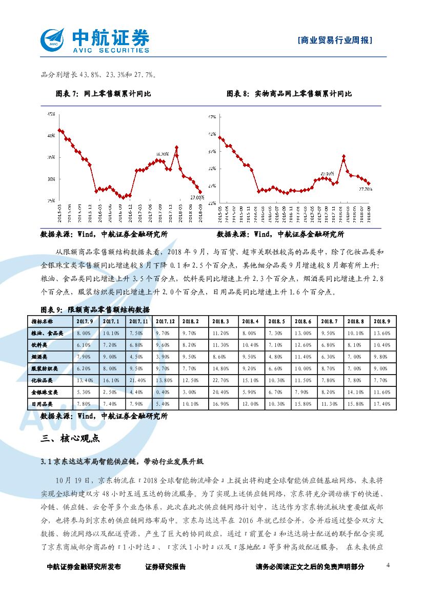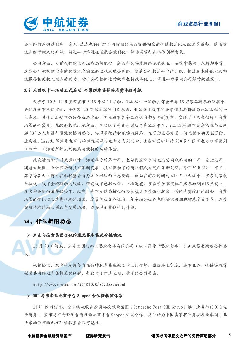 中航证券:商业贸易行业周报:京东达达布局智能供应链网络,天猫双十一带动全渠道消费体验升级.pdf