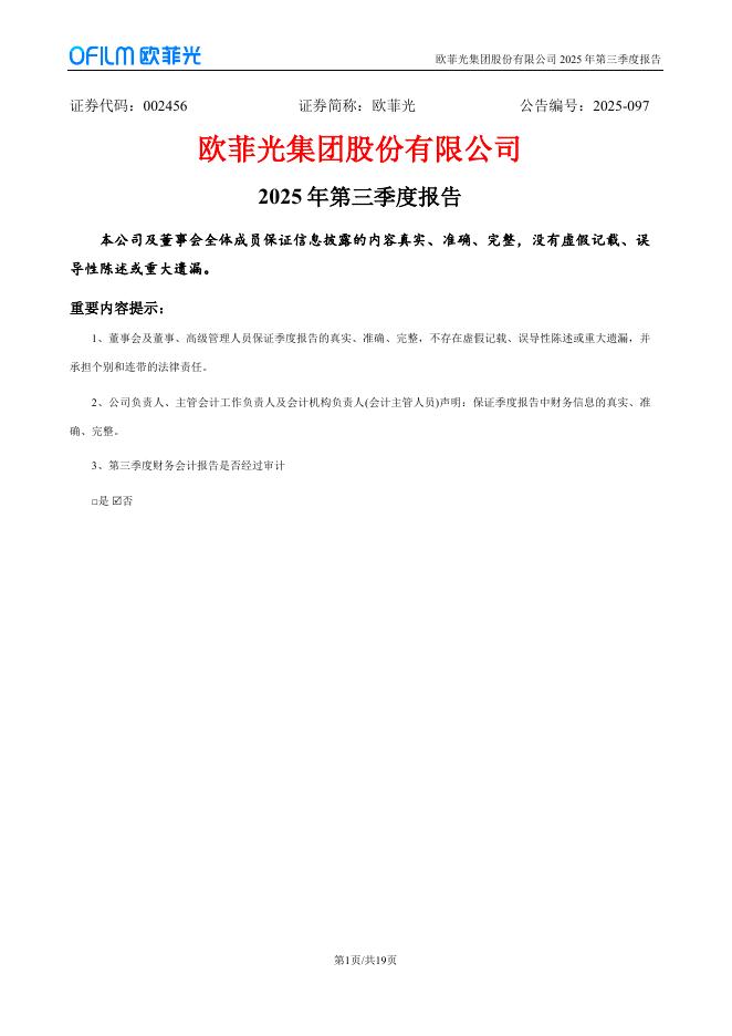 002456-欧菲光:2025年三季度报告.pdf