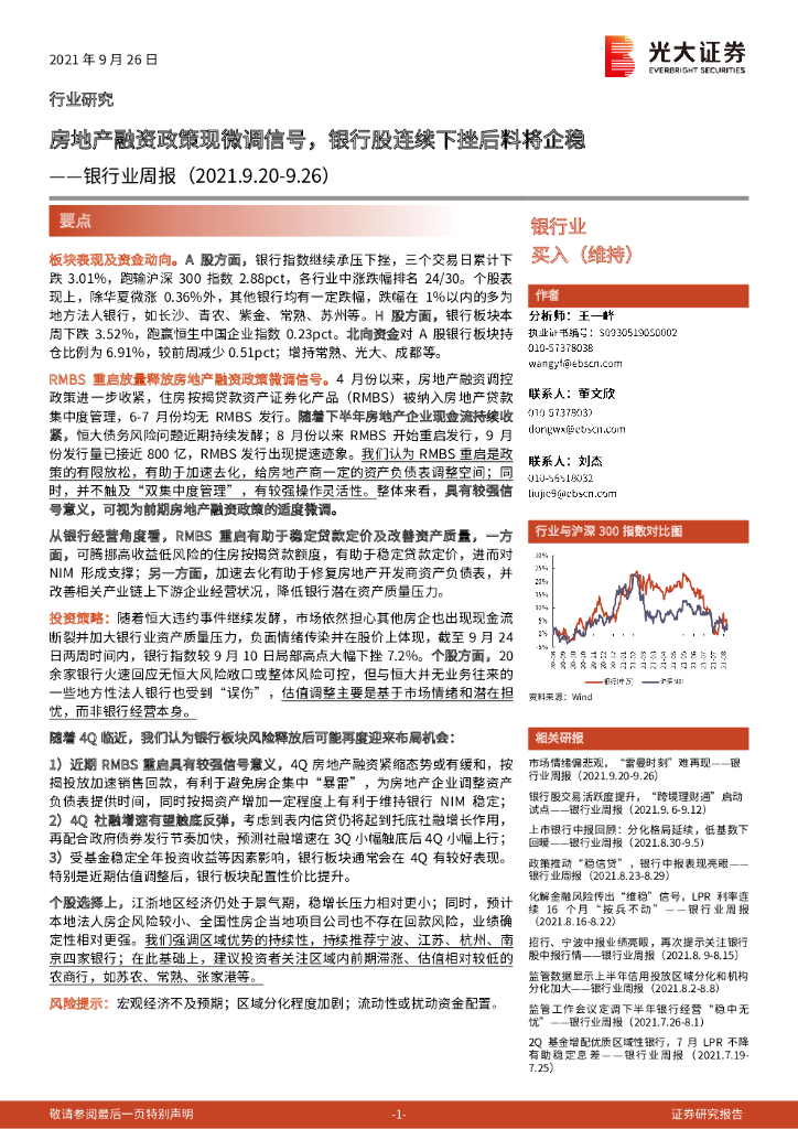 光大证券:银行业周报:房地产融资政策现微调信号,银行股连续下挫后料将企稳.pdf
