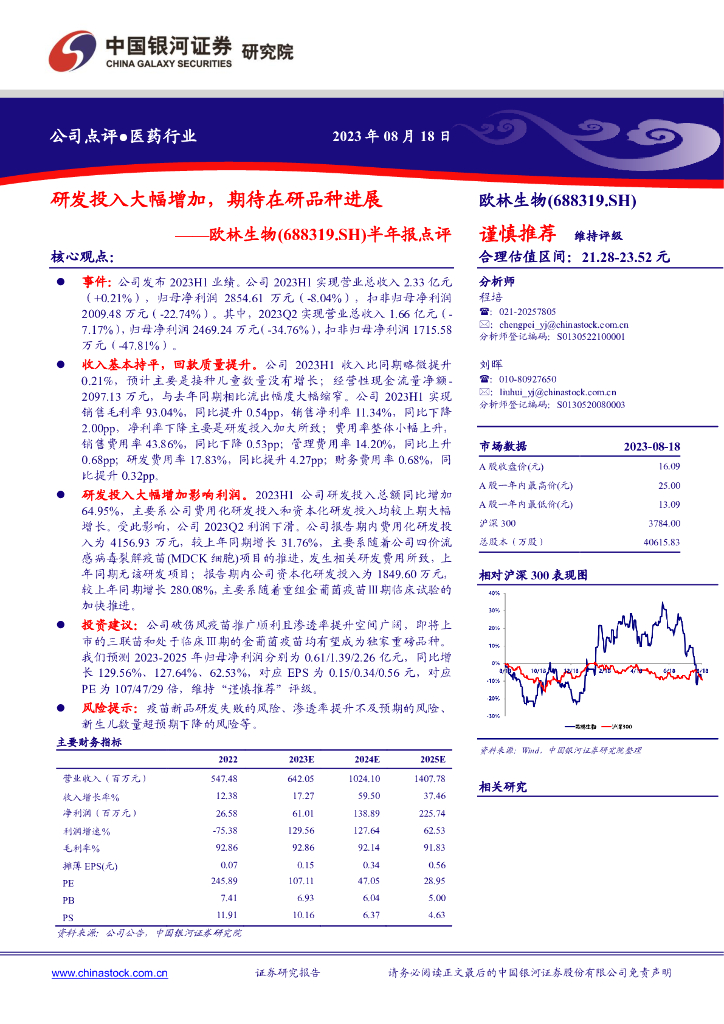 中国银河:欧林生物(688319)-半年报点评:研发投入大幅增加,期待在研品种进展.pdf