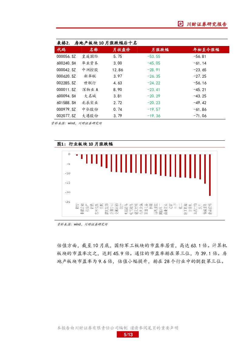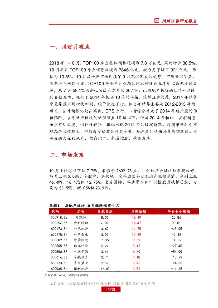 川财证券:房地产月报:10月百强房企销售额环比下降10.5%.pdf
