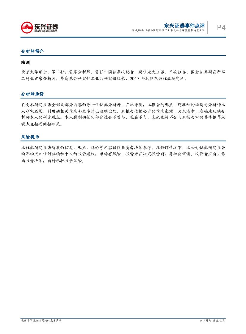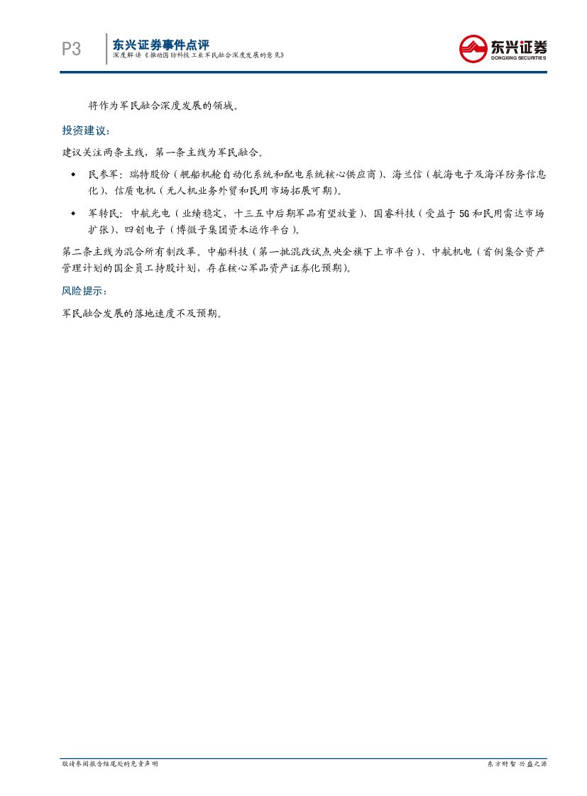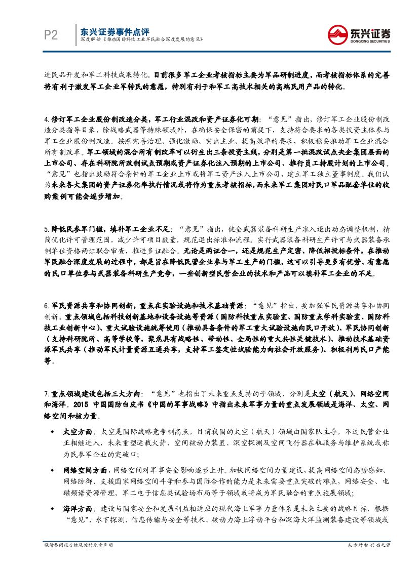 东兴证券:国防军工行业事件点评:深度解读《推动国防科技工业军民融合深度发展的意见》.pdf