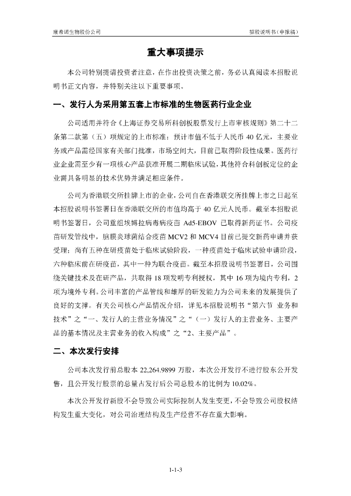 康希诺生物股份公司上交所科创板IPO上市招股说明书.pdf