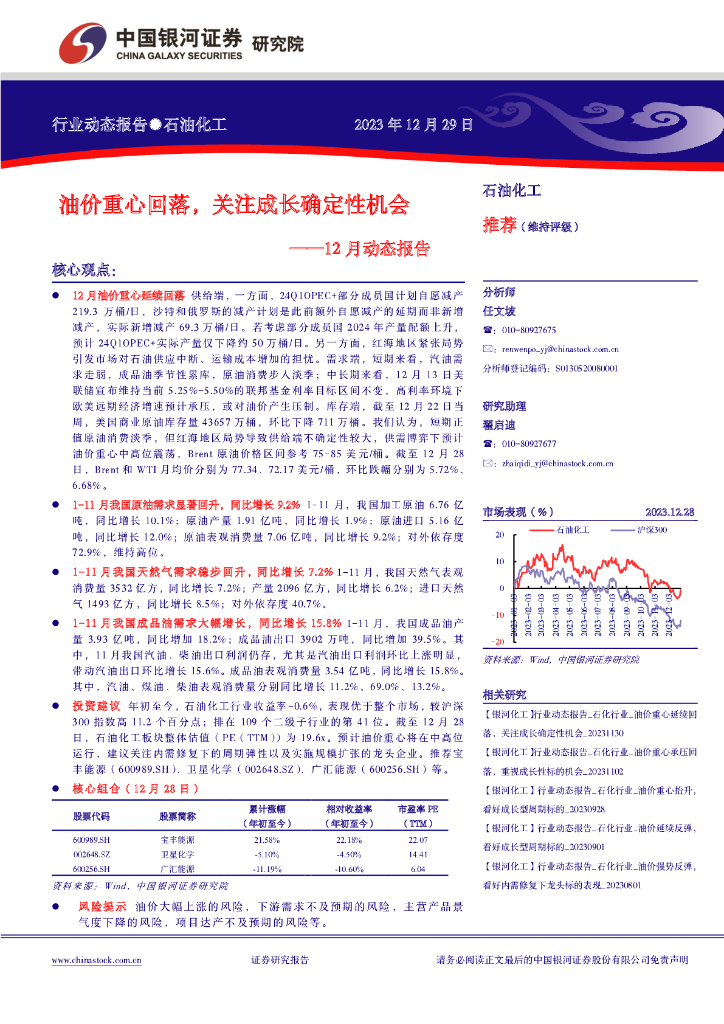 中国银河:石油化工行业12月动态报告:油价重心回落,关注成长确定性机会.pdf