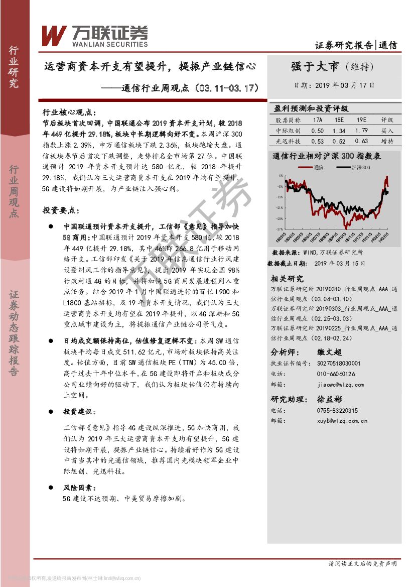 万联证券:通信行业周观点-运营商资本开支有望提升,提振产业链信心.pdf