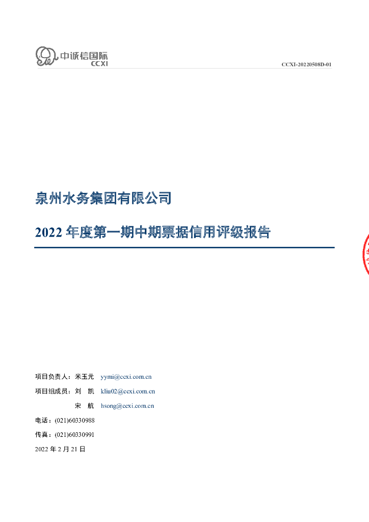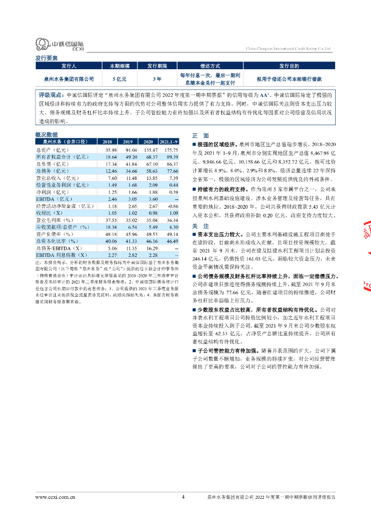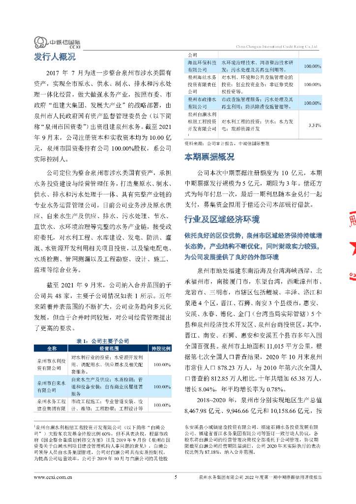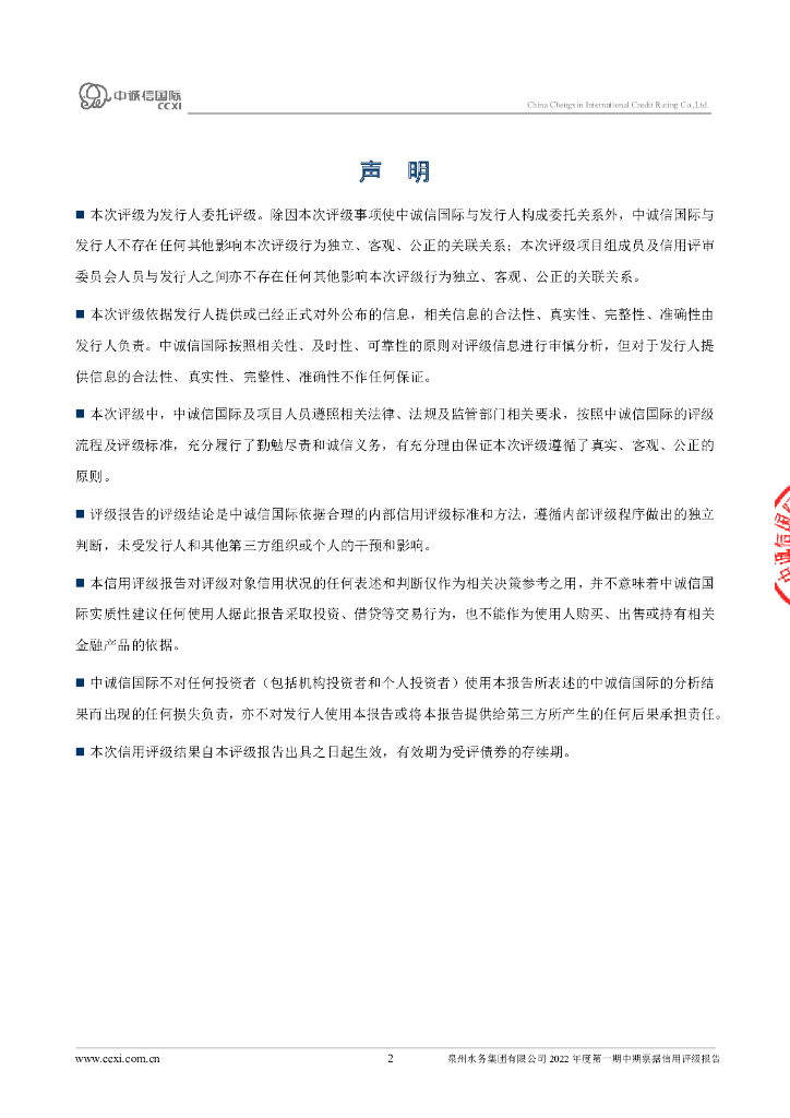 中诚信:泉州水务集团有限公司2022年度第一期中期票据债项信用评级报告.pdf