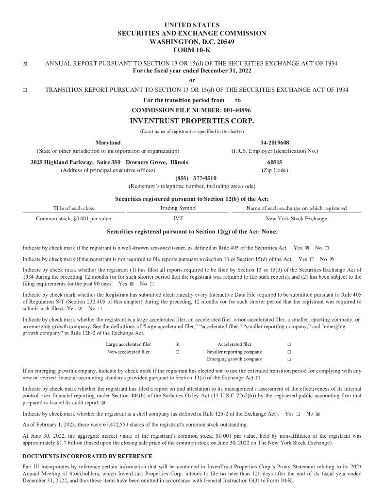 InvenTrust Properties Corp.(IARE)2022财年年度报告(英文版).pdf