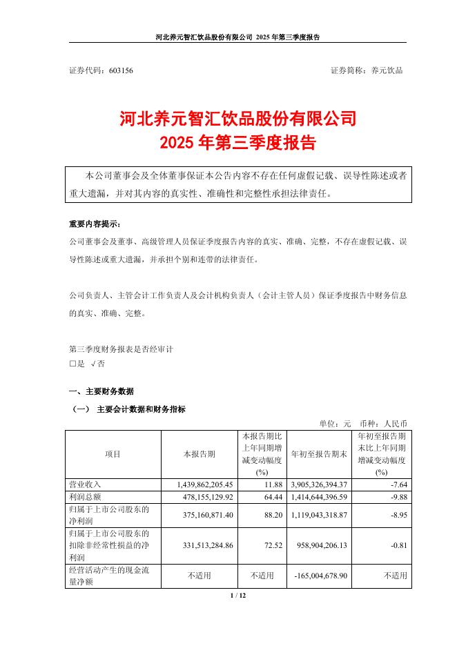 603156-养元饮品:养元饮品2025年第三季度报告.pdf