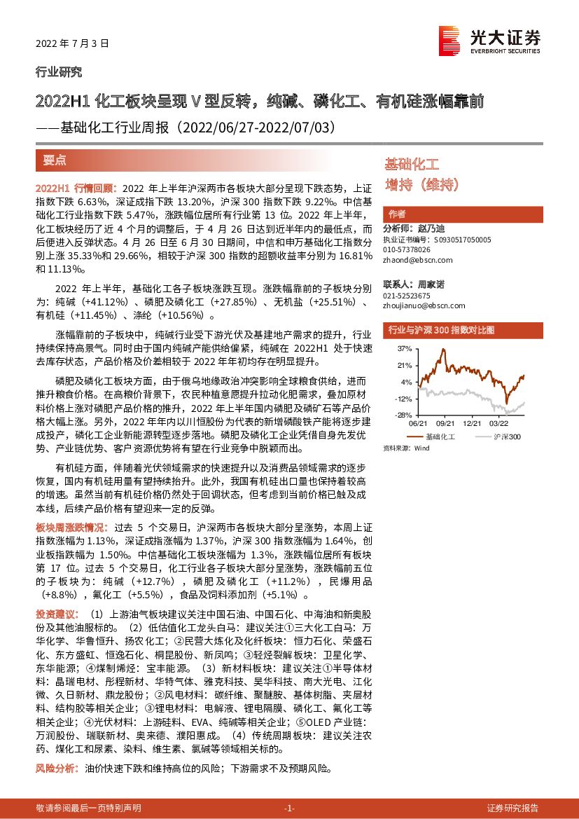 光大证券:基础化工行业周报:2022H1化工板块呈现V型反转,纯碱、磷化工、有机硅涨幅靠前.pdf