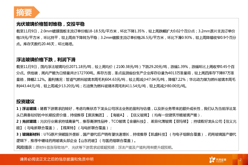 天风证券:玻璃玻纤行业研究周报:光伏玻璃价格暂稳,浮法玻璃价格下跌.pdf