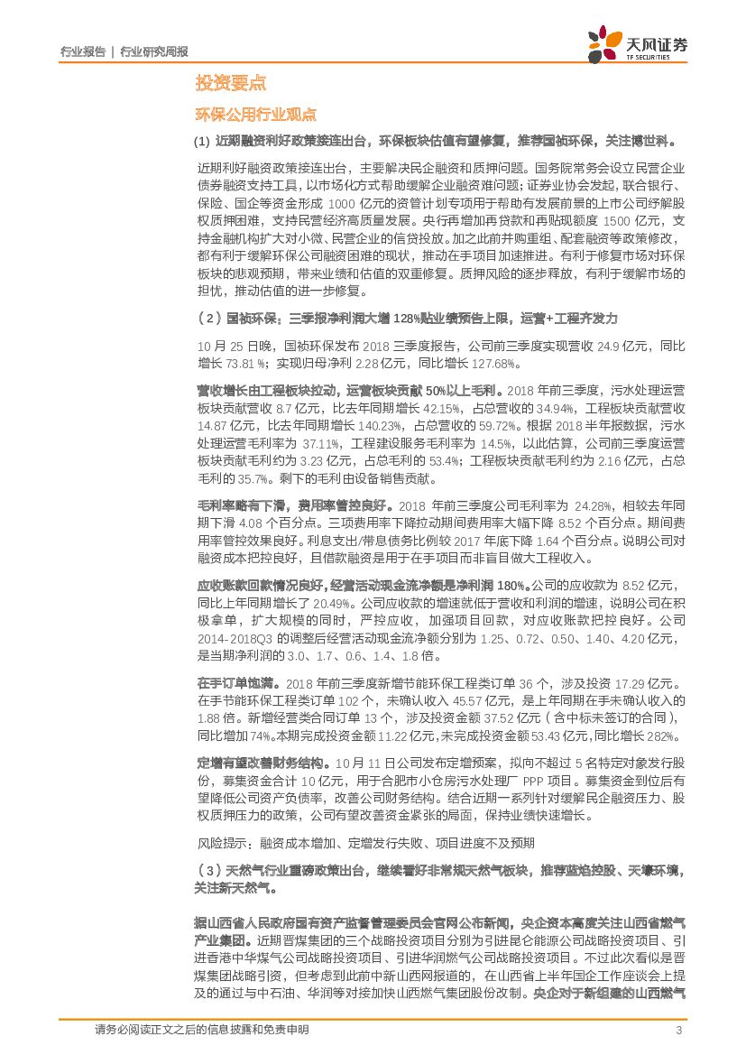 天风证券:公用事业行业研究周报:融资环境改善利好环保板块,国祯蓝焰三季报业绩高增.pdf