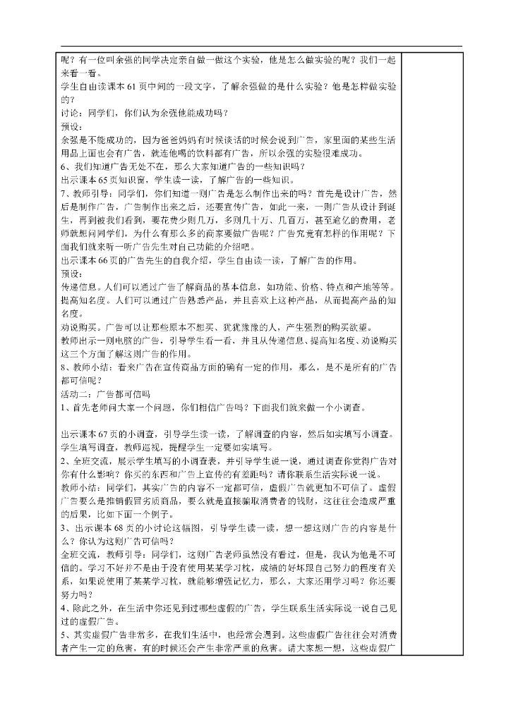2021四年级上册 人教版小学道德与法治3.3 正确认识广告 (表格式).doc