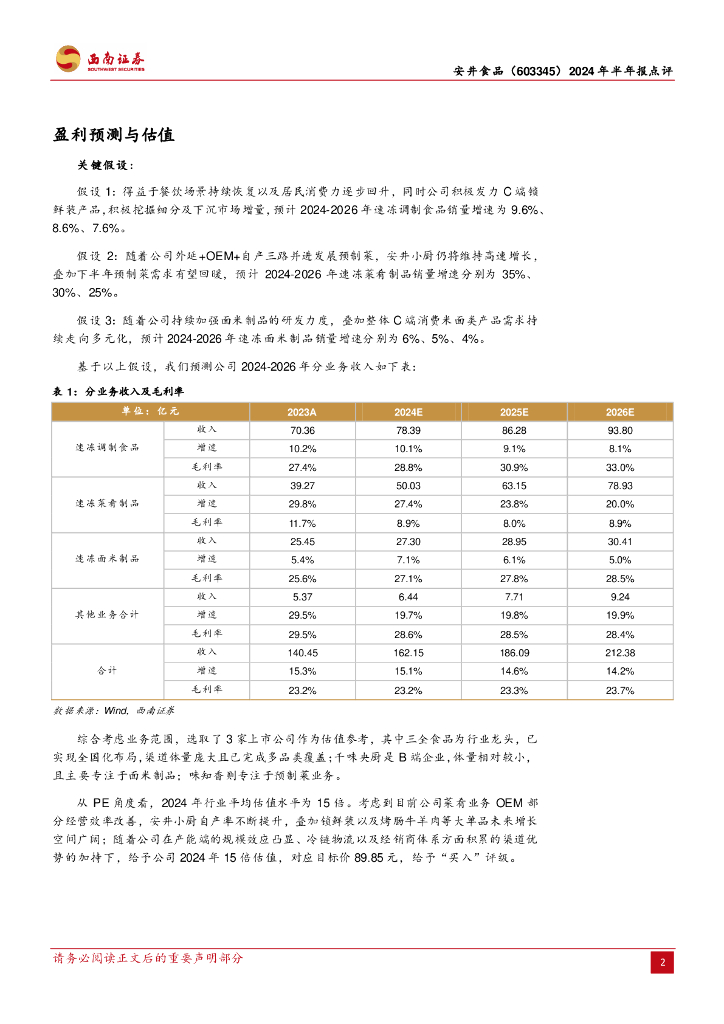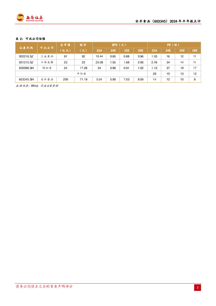 西南证券:安井食品(603345)-2024年半年报点评:H1主业维持稳健增长,旺季表现值得期待.pdf