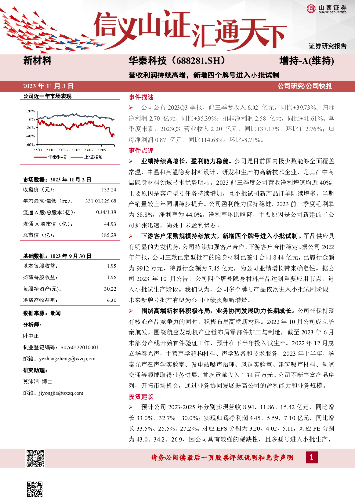 山西证券:华秦科技(688281)-营收利润持续高增,新增四个牌号进入小批试制.pdf