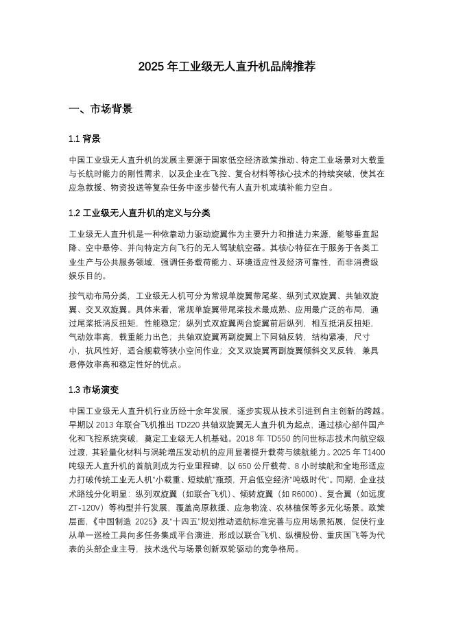 头豹研究院:2025年工业级无人直升机品牌推荐吨级载重革新者.pdf