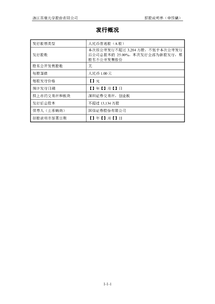 浙江百康光学股份有限公司深交所创业板IPO上市招股说明书.pdf