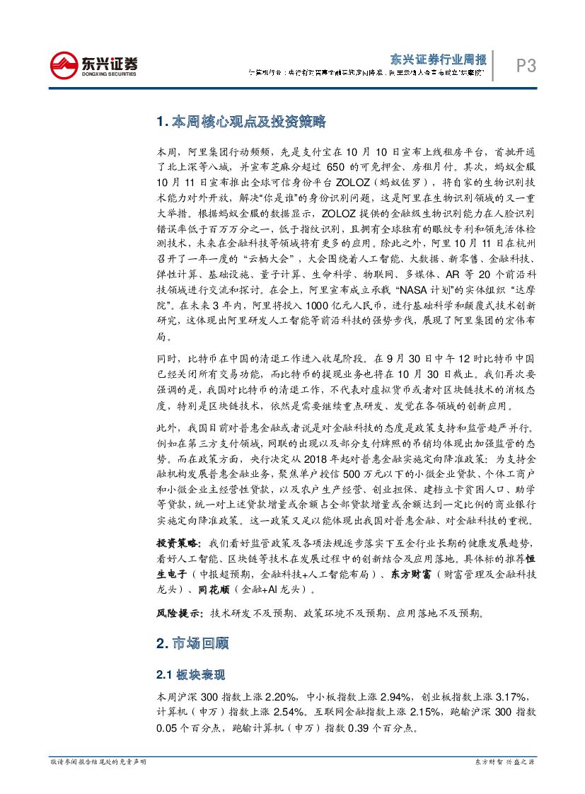 东兴证券:互联网金融周报:央行将对普惠金融实施定向降准,阿里云栖大会宣布成立“达摩院”.pdf