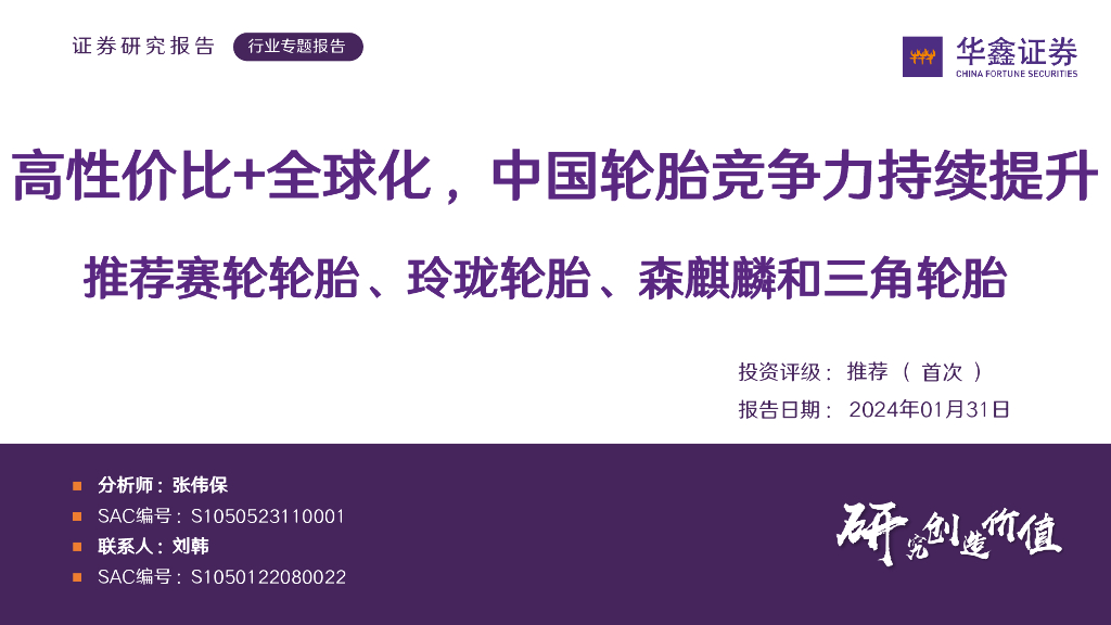 华鑫证券:轮胎行业专题报告:高性价比+全球化,中国轮胎竞争力持续提升 推荐赛轮轮胎、玲珑轮胎、森麒麟和三角轮胎.pdf