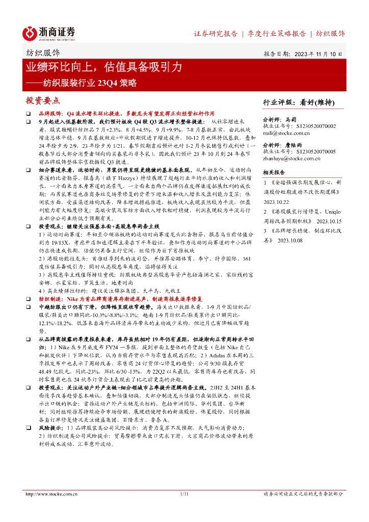浙商证券:纺织服装行业23Q4策略:业绩环比向上,估值具备吸引力.pdf