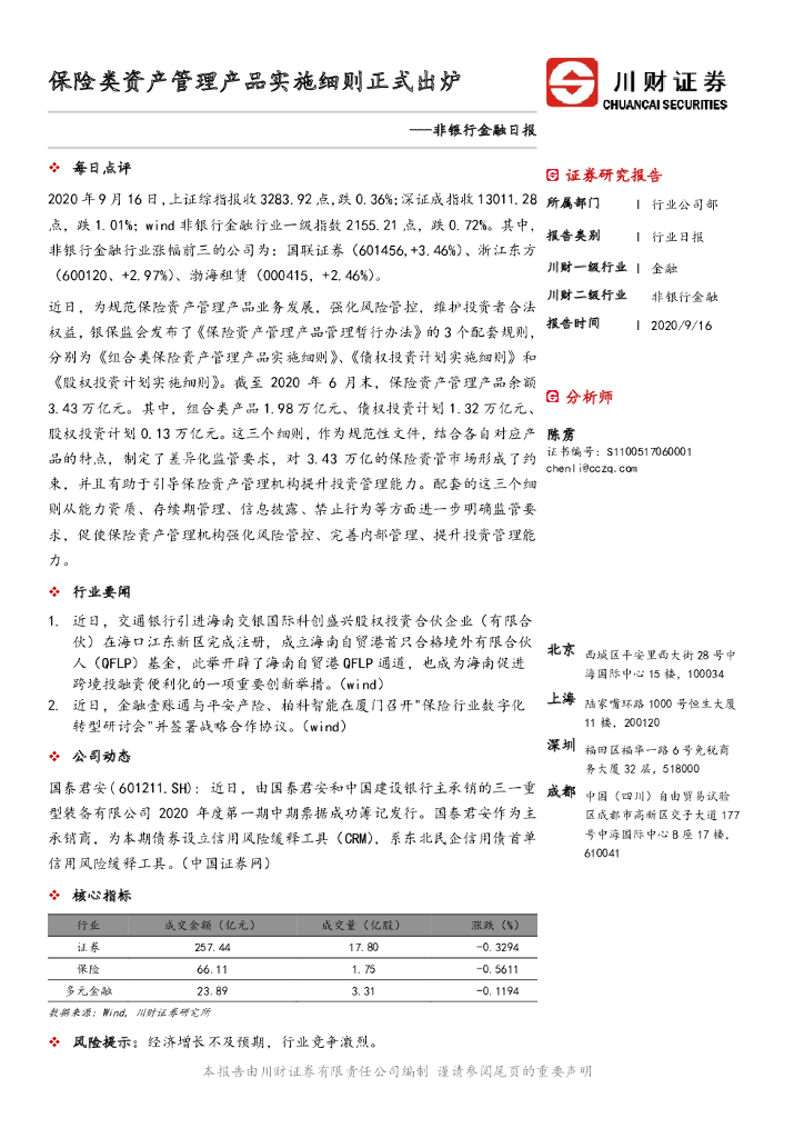 川财证券:非银行金融日报:保险类资产管理产品实施细则正式出炉.pdf