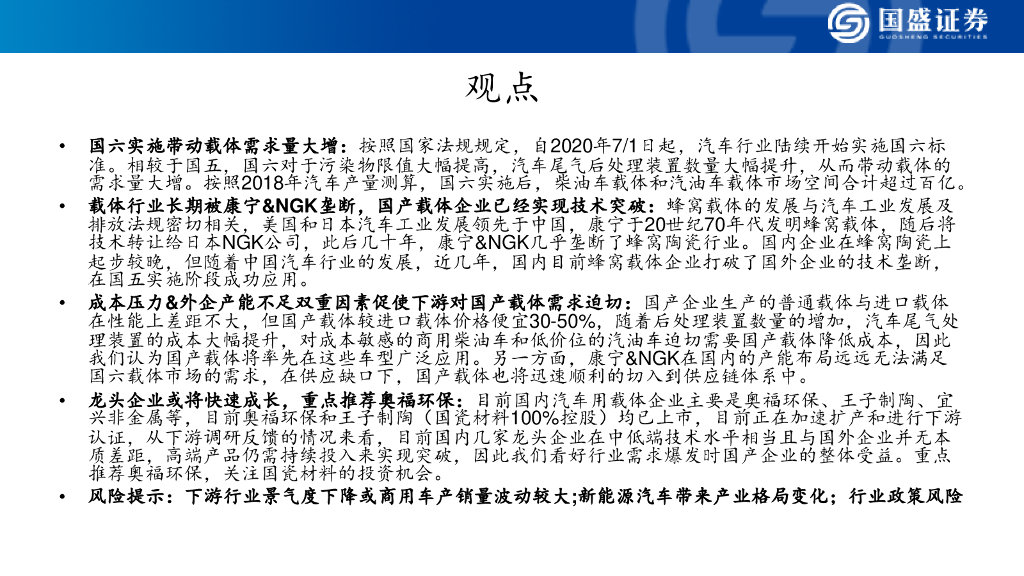 国盛证券:国六实施催生百亿载体空间,国产载体迎来大发展.pdf