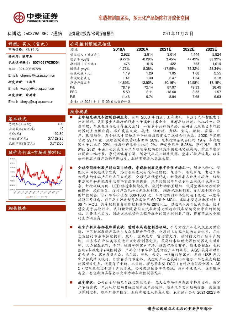 中泰证券:科博达企业研究:车载控制器龙头,多元化产品矩阵打开成长空间.pdf